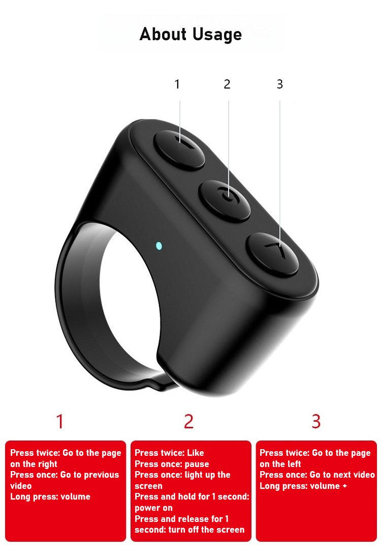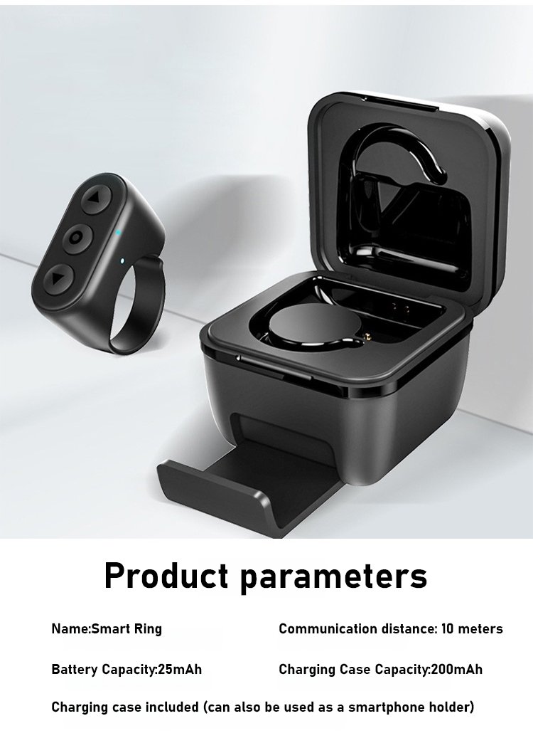 Self-contained stand charging compartment finger ring bluetooth cell phone remote control